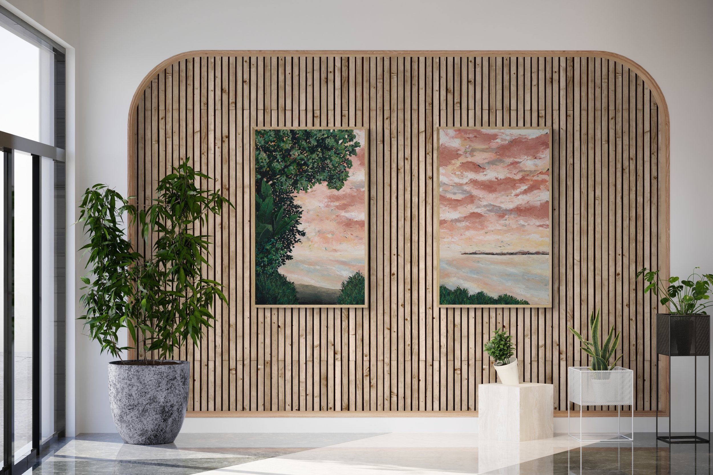 My paintings offer something new to discover every time you look at them—the subtle shifting from one color to another and the variety of textures. The scenes, which bring positive energy to your space, invite you to pause and contemplate amidst the busyness and routine of life.